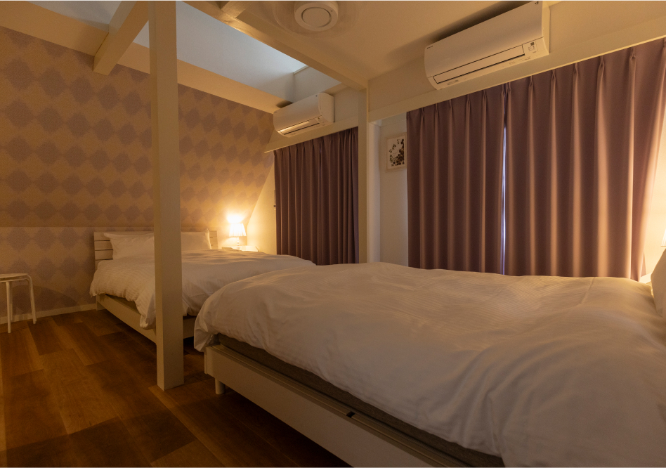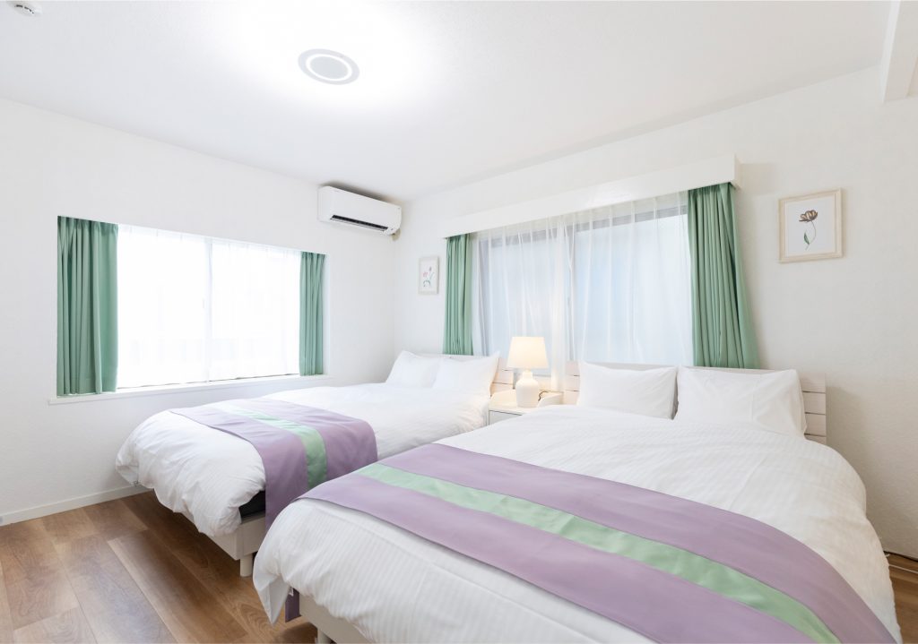 Wi-Fi / エアコン / バルコニー / 専用バスルーム / バスタブ / シャワー / ハンドタオル / バスタオル / ドライヤー / シャンプー / リンス / ボディーソープ / 歯ブラシ / スリッパ / ウォッシュレットトイレ2箇所
