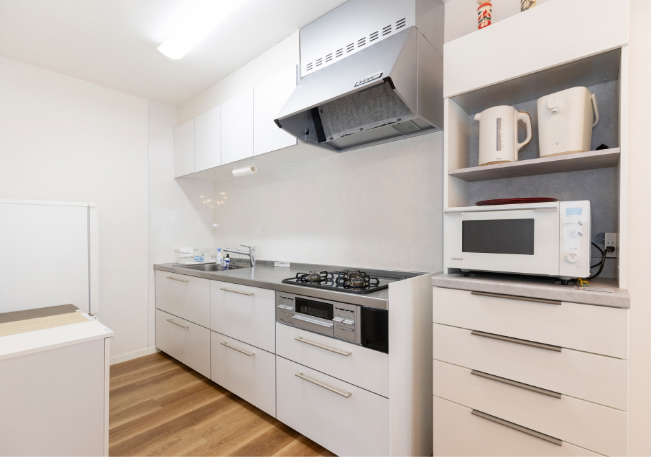 Wi-Fi / テレビ / 電子レンジ / 湯沸かしポット / 食器類 / 専用キッチン / 冷蔵庫 / 調理用具 / 調味料 / 食器類