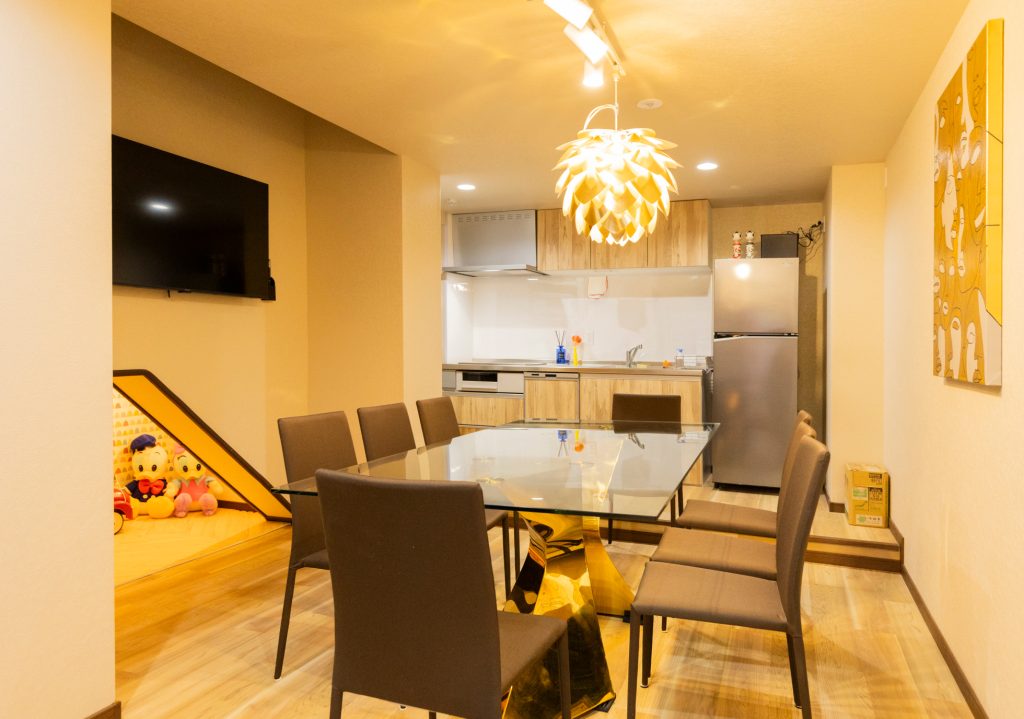 バーカウンター / キッズプレイエリア / Wi-Fi / テレビ / 電子レンジ / 湯沸かしポット / 食器類 / 専用キッチン / 冷蔵庫 / 調理用具 / 調味料 / 食器類