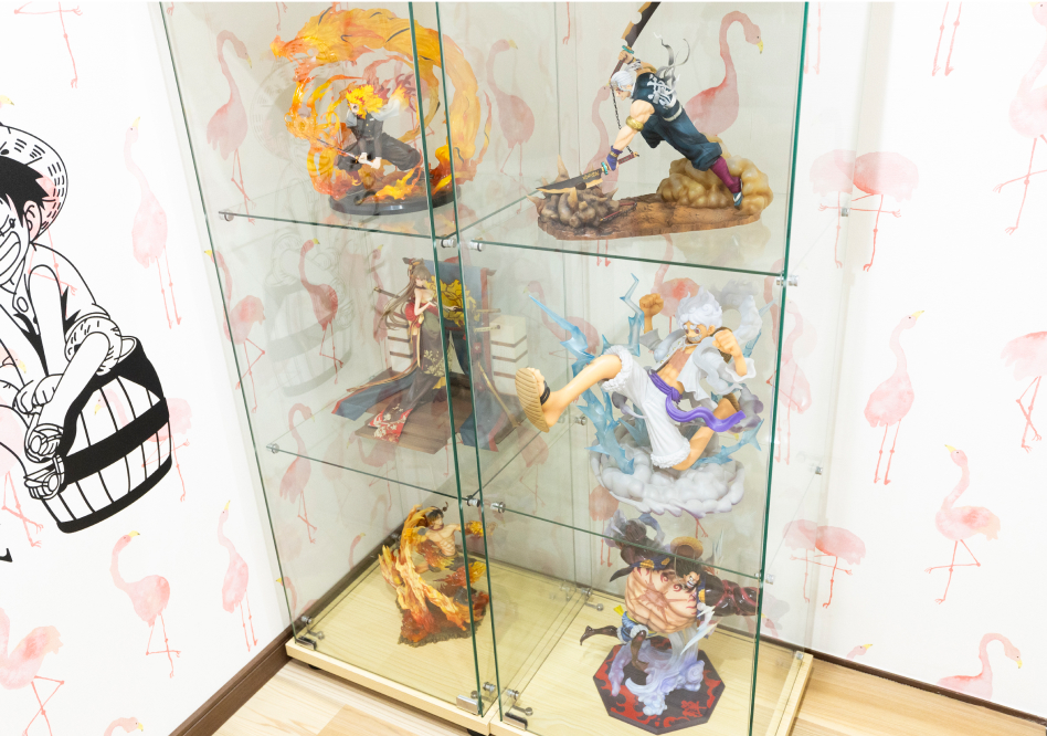 バーカウンター、ワークスペース、人気アニメのコレクションフィギュア、